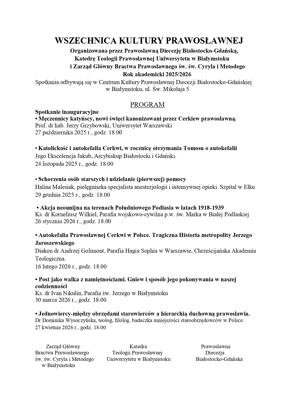 Wszechnica Kultury Prawosławnej 2025/26
